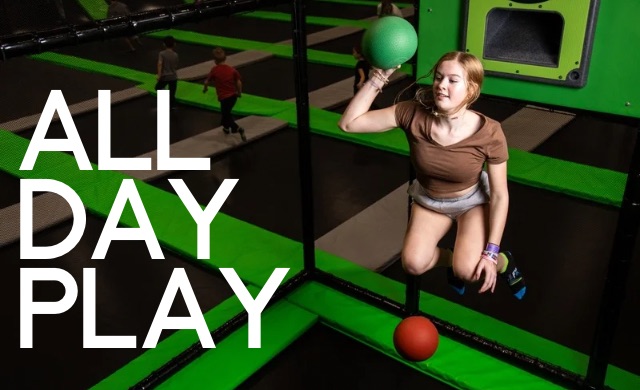 General Admission provides access to all of the trampoline attractions and Ninja Warrior Zones in the park. This includes the main trampoline court, trampoline foam pits, dodgeball, and basketball. It also includes Valo Jump, AeroStrike, SkyPods and High-9 attractions. Guests less than 48″ tall also have access to the Tumbler Zone. Grip socks are required.